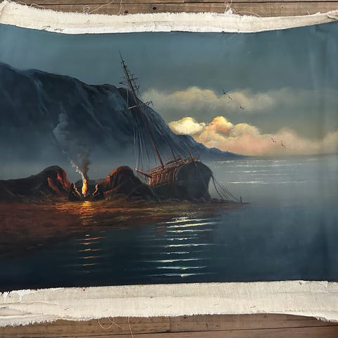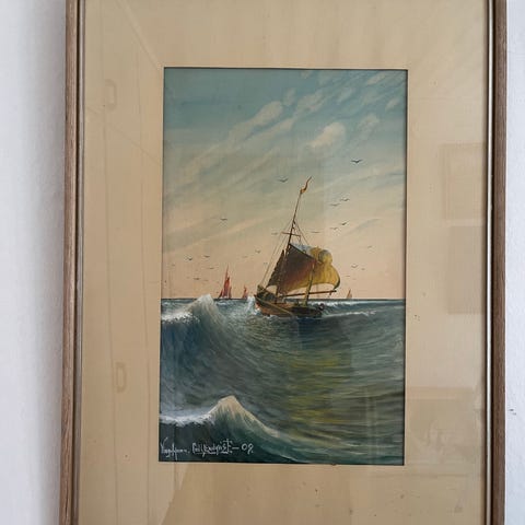 Tavla med sjöman och kvinna i fönster