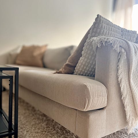 Säljer pga flytt. Färgen heter Alex Beige och soffben i 16cms höjd (svart). Säljes omgående.