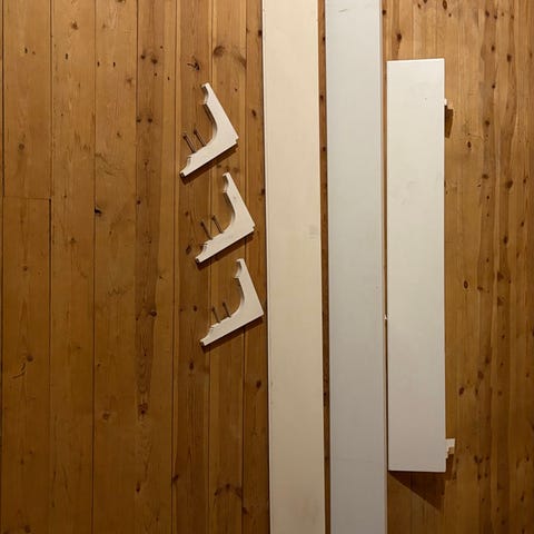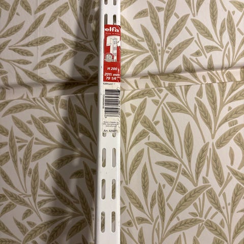 Elfa-hängskenor av äldre modell, 2300 mm långa.