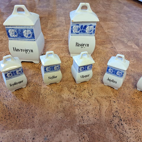 Kryddskåp/hylla i trä/keramik. Tillverkad i Gefle/Uppsala Ekeby. Den är hel endast missfärgning på ett fack.