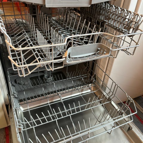 Diskmaskinen är avsedd för helintegrering bakom kökslucka och passar standardkök med 60 cm bred nisch. Invändigt finns korgar och bestickkorg för organisering av tallrikar, glas och bestick. Frontpanel med knappar och display sitter på luckans ovankant och blir dold när luckan är stängd.