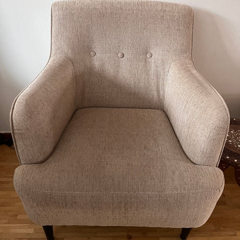 2 st Ikea strandmon fåtöljer, mörkgrå. Båda är Synligt använda, den ena fåtöljen har en beigh klädsel med pall. Fungerande och sköna att sitta i, men behöver ny klädsel, finns att köpa på ikea. 250 kr för fåtöljen med pall, den utan 200 kr.