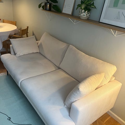 Säljer vår älskade soffa inköpt på Posh living för 4 år sedan. Obs, ena armstödet är nedsuttet (se bilder), syns inte med blotta ögat men man kan känna det. Går säkert att åtgärda.
