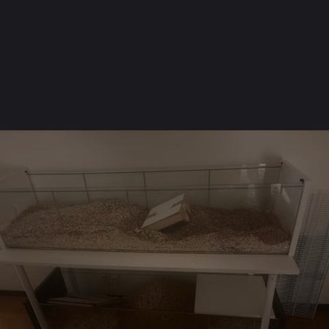 Påbyggd IKEA möbel, botten och sidor i glas. Mycket tillbehör enligt bilder. Även sand, strö och lite mat ingår. Bredd 163cm, djup 43cm, höjd utan överdel med galler 37cm.