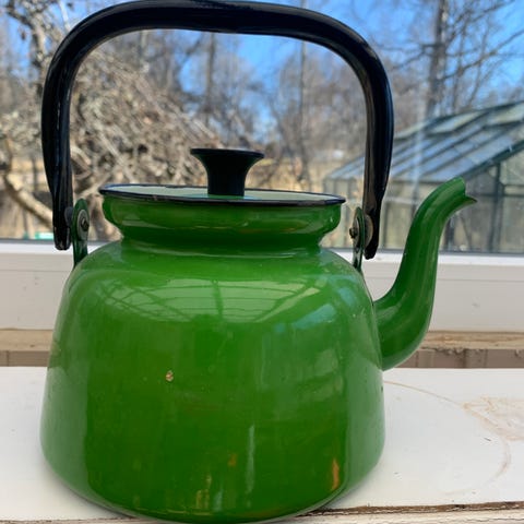 Otroligt vacker antik tekanna på ställning. Engström. Saknar knopp på locket.