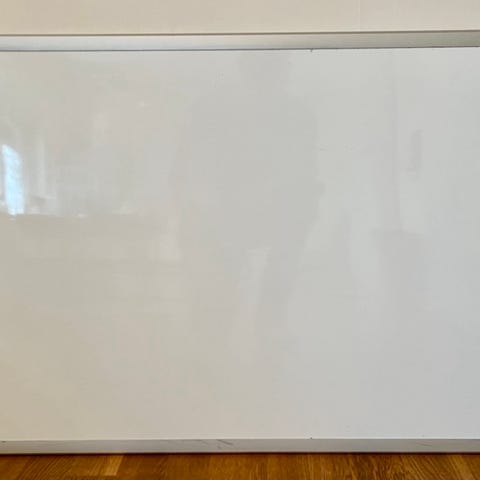 Whiteboard i rektangulär form med vit skrivyta och ram runtom.