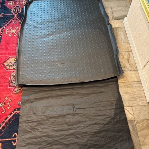 BMW bilmattor i svart färg. Upp sättningen består av fyra mattor avsedda för kupén, två fram och två bak. Mattorna är formskurna för att passa en BMW-modell och är av textilmaterial.