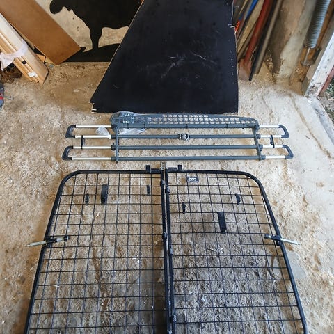 Bruna grindar höjd 105 bredd 62,5 till 106,8 mycket bra går att öppna både in och ut öppnas lätt med en hand. Finns 2 stycken säljes för 600kr styck