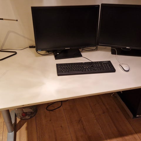 Skrivbord med avtagbar förlängning , samt med tillhörande dator hylla.