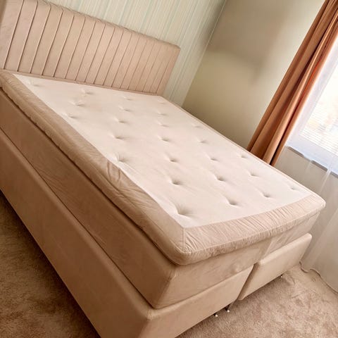 Förvaringsutrymme under sängen.