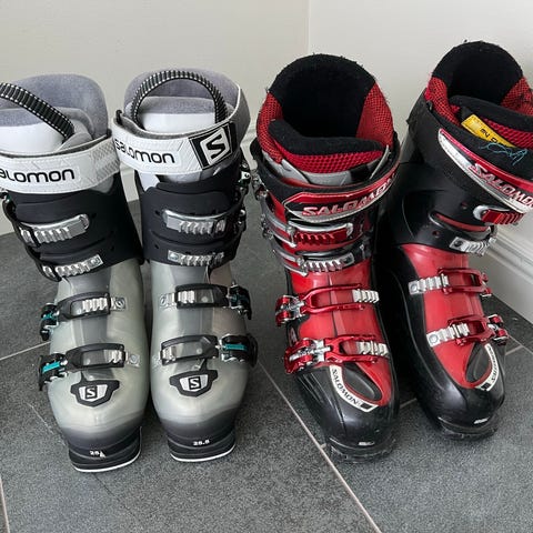 Slalompjäxor, passar till skostorlek 39-40. Modell med bakre spänne och enkel justering.