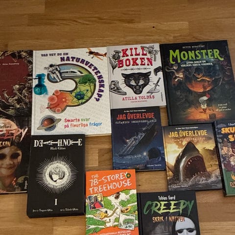 Paket med blandade barnböcker på svenska, främst illustrerade kapitelböcker. I paketet ingår bland annat titlar som "Musse & Helium – Den hemlighetsfulla världen" av Camilla Brinck och "Den magiska bokhandeln – Biblioteket i trädkojan" av Anna James. Böckerna har hårda pärmar och innehåller både text och färgillustrationer, anpassade för barn i låg- och mellanstadieålder. Lämpliga för högläsning eller egen läsning för barn som kommit igång med lite längre texter.