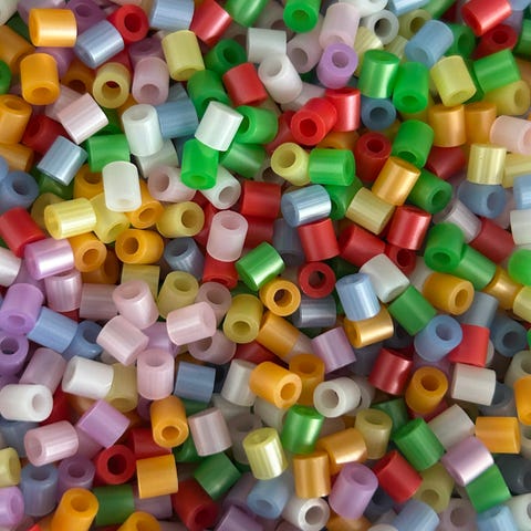 Nya rörpärlor från NABBI, 6 hinkar med 5000st pärlor i varje, 30 000 pärlor. En hink av varje färg.