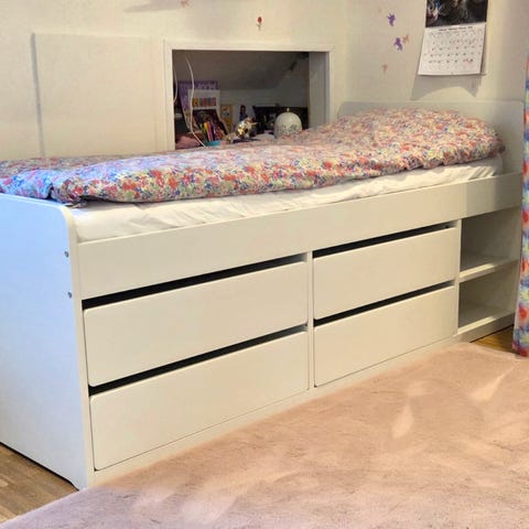 IKEA säng med utdragssäng och förvaringslådor vit