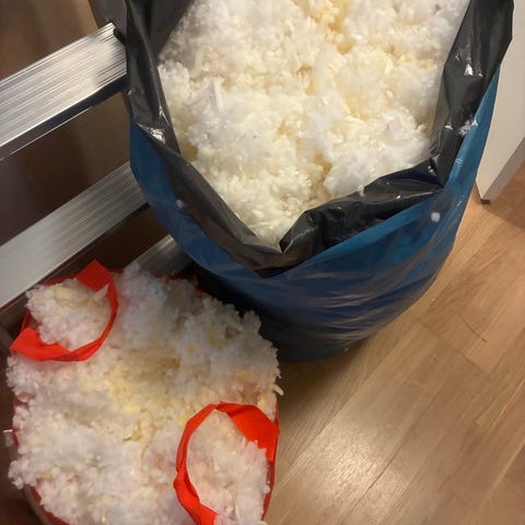 Vita frigolitkulor som fyllnadsmaterial. Levereras i plastpåse enligt bild. Kan användas som stoppning eller fyllning, till exempel i kuddar, sittpuffar eller andra projekt där lätt och formbart material behövs.