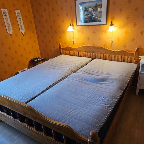 Carpe Diem Beds, Malö, säng med 2x90cm madrass och metallram i mässing . Sängen har en fast madrass och en medium. Metallramen är rektangulär med huvudgavel och fotgavel i samma stil. Passar som dubbelsäng i sovrum. Ytterligare mått och exakta specifikationer kan kontrolleras vid behov.