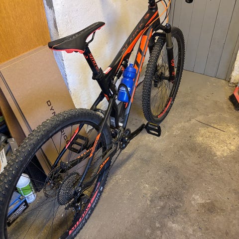 Scott spark 710 väldigt lätt mountainbike heldämpad ramstorlek M och 27,5" hjul. Utrustad med framgaffel med dämpning och hydrauliska skivbromsar fram och bak. Hjul med Schwalbe-däck anpassade för terrängkörning. Cykeln är lämplig för stigcykling, pendling på blandat underlag och träning i skog och mark. Ny kasset bak , kedja