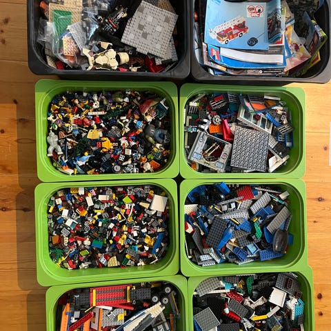 Har också en skål med flera delar och gubbar som ingår också. Instruktionsböcker medföljer också.