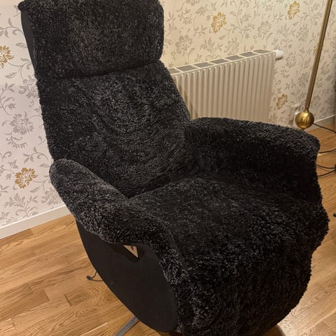 Tord Björklund fåtölj, klädd i fårskinns imitation. Avtagbar dyna. 1970/80-tal. Mycket fräscht, fint skick. Stomme i kromat stål. Se mina övriga annonser.