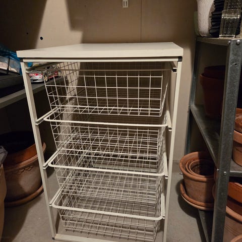 Elfa trådbackar. 175 cm hög, 54 djup, 35 bredd.