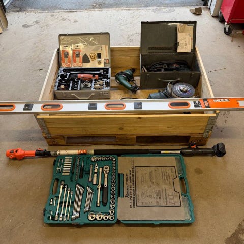 Träpallar i blandade storlekar och utföranden. Pallar lämpliga för förvaring, transport eller som råmaterial för olika bygg- och gör-det-själv-projekt. Förvaras utomhus på mark med snö runtom. Märken och slitage kan förekomma efter tidigare användning.