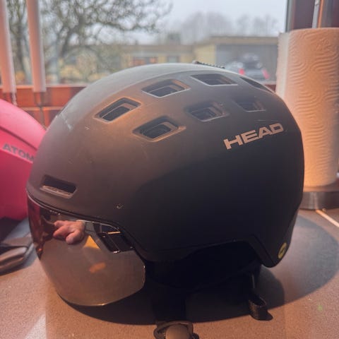 Atomic-hjälmen med integrerat visir gör att du slipper skidhjälm + goggles. Visiret ger bra sikt och är lätt att använda i varierat ljus. Fungerar med vanliga glasögon under.