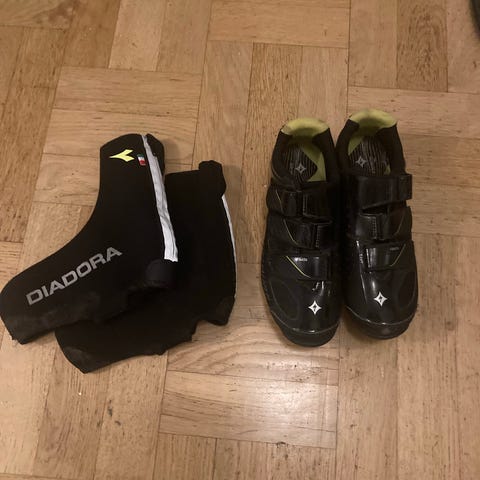 Specialized cykelskor i storlek 39. Svarta skor med kardborreband över foten. Mönstrad sula med fäste för SPD-liknande klickpedaler. Ovandel i syntetmaterial med perforeringar för ventilation. Passar för cykling där man använder klickpedaler och behöver en greppvänlig yttersula, till exempel MTB eller pendling.