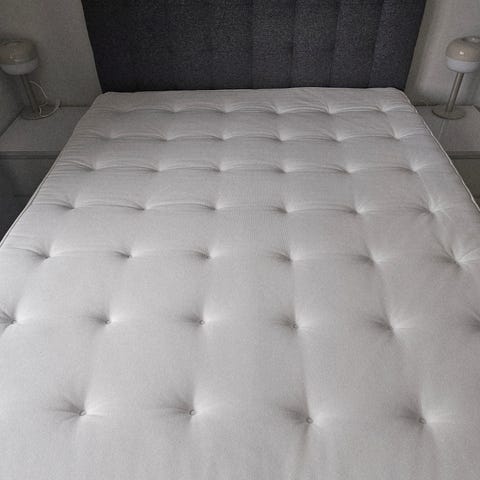 Hilding bäddmadrass i vit färg. Fast/ medium. Madrassen har quiltad ovansida med knappsydd struktur. Passar som extra komfortlager ovanpå säng