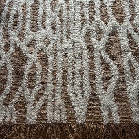 Jysk matta 140x200 i beige färg med invävt reliefmönster i form av cirklar och linjer. Rektangulär modell som passar exempelvis vardagsrum, sovrum eller hall. Säljes pga flytt