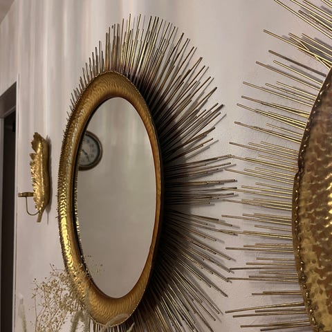 Mio rund spegel med enkel, tunn ram. Passar exempelvis i hall, sovrum eller vardagsrum som väggspegel eller dekoration.