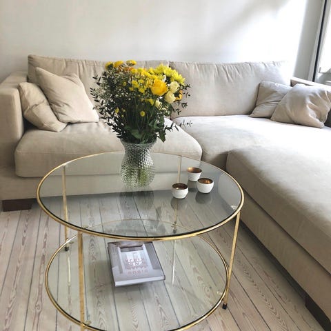 Soffbord från Ellos , nypris 5000kr. Bordet är 70x70 och 35cm högt. Soffbord med stomme i pulverlackad metall. Toppskiva tillverkad av kakelplattor lagda i ett rutmönster med en MDF-skiva under.