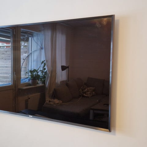 Samsung UE55F6515SB TV 55 tum i silverfärg. Smart-TV med stöd för appar som bland annat YouTube. Modellen har beteckningen UE55F6515SB och typ UE55F6515B enligt etiketten på baksidan. Typisk effektförbrukning är 82 W vid drift. TV:n står på ett metallfärgat stativ med tre ben. Anslutningar och övriga tekniska specifikationer följer Samsungs standard för denna modellserie, med flera ingångar för externa enheter och nätverksanslutning för smarta funktioner.
