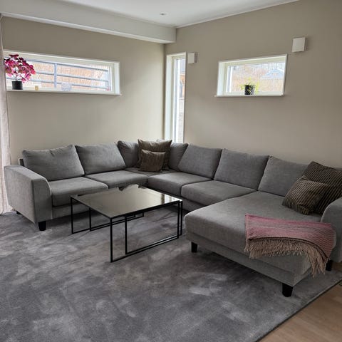 Stor soffa med många sittplatser inkl flyttbar fotpall. Inköpt från Tibergs i Göteborg.