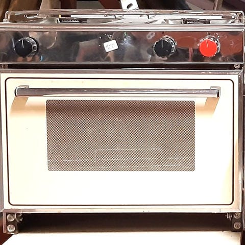 Mycket sparsamt använd inbyggnadsugn för gasol med grill och belysning (12V).