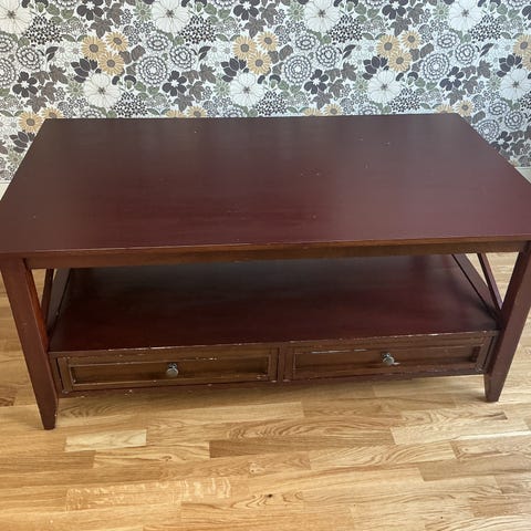 Soffbord med praktiska hyllor! Längd 120, bredd 50, höjd 50 cm. Kan även användas som sittbänk eller tv möbel.
