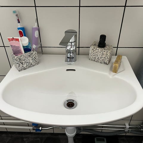Badrum - tvättställ och skåp