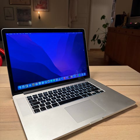 Säljer min MacBook Pro 15” från 2015 med Retina-skärm. Jag är första ägaren och datorn har använts dagligen men är väl omhändertagen och fungerar som den ska.