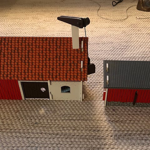 Bondgård / stall med hästar och ryttare