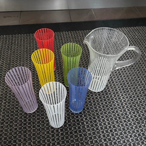 12 Set med gröna ölglas och matchande små muggar i glas Johanfors Glasbruk, Bengt Orup (1916-1996). Glasen har handtag och cylindrisk form, 18,5 cm och muggarna är låga, 6 cm. med handtag. Glasen har bubblig struktur i materialet. Inga repor eller skal. Kort på alla 12 kan skickas vid visad intresse. Säljes samlad, kr. 250,- pr sett. (1 stor 1 liten) Exklusivt för samlare.