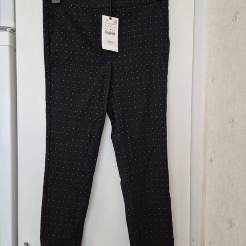 Snygga vinröda/bruna kostymbyxor med klassisk passform och raka ben. Byxorna har hällor för bälte, diskreta sidofickor och en bakficka. Materialet ser ut att vara ett mjukt tyg som passar bra till en dressad look. Sytt ett tyg det med rosa tråden. Finns gul fläck.
