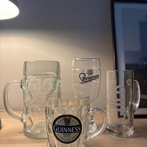 Rörstrand ölsejdel set i keramik. Flera sejdelar i samma serie med mörk, huvudsakligen svart glasyr och dekorativt mönster. Passar för servering av öl eller andra drycker vid bordet eller i baren. Klassisk utformning med handtag för bekväm användning.