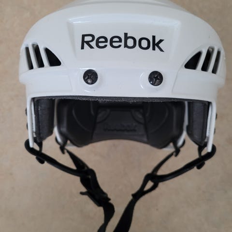 CCM hockeyhjälm med galler i vit färg. Hjälmen har justerbar passform med spännen i nacke och sidor. Utrustad med avtagbart galler i metall för ansiktsskydd. Invändigt finns vaddering för komfort och stötdämpning. Model/storlek FL40S.
