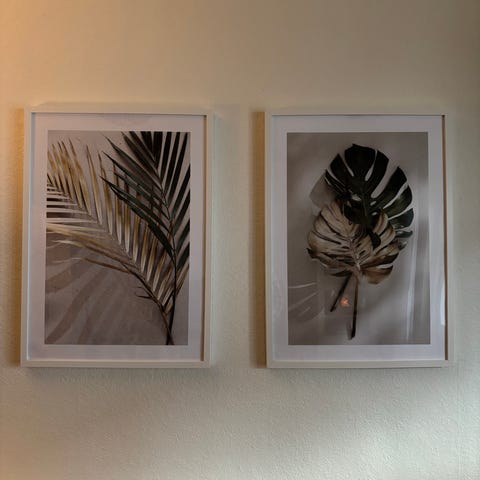 Två väggdekorationer, blomblad i metall. Från Mio.