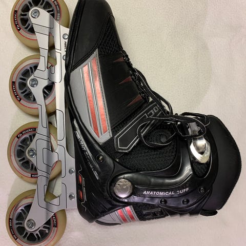 Inlines rullskridskor i storlek 46. Modellen har hårt yttre skal med justerbara spännen och snörning för stabil passform. Färgkombination blå och svart med gula hjul. Innerstövel med vadderad insida för ökad komfort. Passar för rullskridskoåkning utomhus på asfalt och liknande underlag.