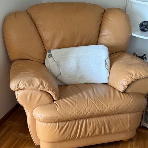 Skinnsoffa från 90-talet, inkl två fåtöljer