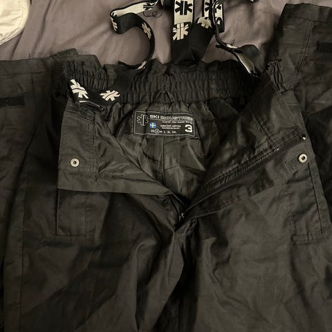 Skidbyxor stl. 158/164, unisex Ski Industries, windproof, water resistant, third layer, svarta, i mycket bra skick. Byxorna har justerbara hängslen och midja.