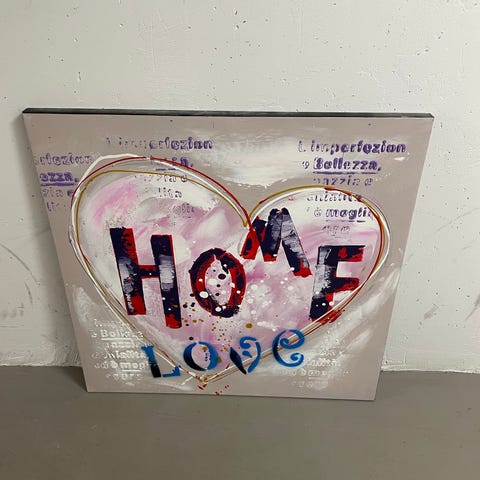 En fin tavla med texten "love" och blommotiv. Tryck på duk.