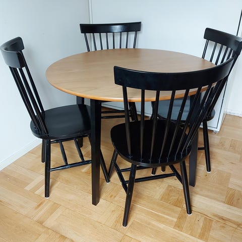 Säljer ett fint retro matbord från 60-talet. Bordet är stabilt och i bra vintage skick med normalt bruksslitage. Finns iläggsskiva 45cm