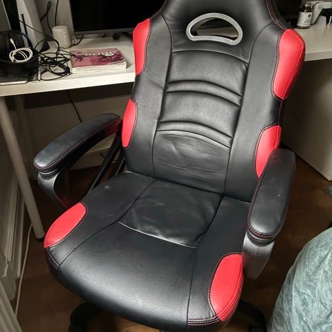 Arozzi gamingstol och skrivbord i svart och rött utförande.