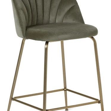Sammetstyg i grönt och ben i mässingfärgad metall.